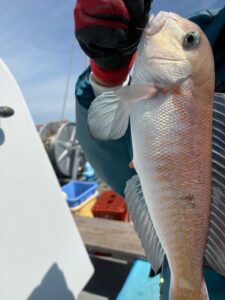 9月22日 釣果 本日アマダイ出船、北東風が吹いていたが釣りに影響することは無く安心して釣りが楽しめました。 ただ、前半は潮が動かず、苦戦しましたが、終了までには各人お土産確保できました。 アマダイ 25~42センチ 4~6匹 他 レンコ鯛 鯵