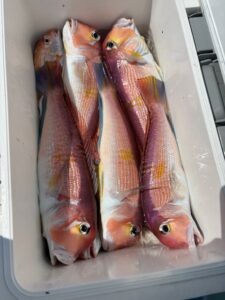 結果 アマダイ30から45センチの赤アマダイが8から12匹、蓮子鯛多数、白アマダイの40センチが1匹との釣果でした。